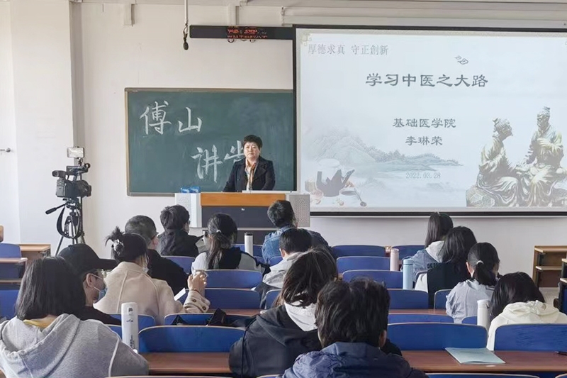 李琳荣作了题为“学习中医之大路”经验分享的讲座。从中医教育史上的丰碑“五老上书”到现在中医教育的蒸蒸日上,为同学们讲述了中医教育发展的历程。她结合自己的经验,对同学们学习中医提出四点建议:一是精读中医经典,从经典中学习思维;二是勤写读书笔记,摘记示例总结公式;三是坚持深思,透过表象看问题,既要推陈出新也要守正创新;四是学会善记,继承弘扬优秀的传统文化,牢记初心。