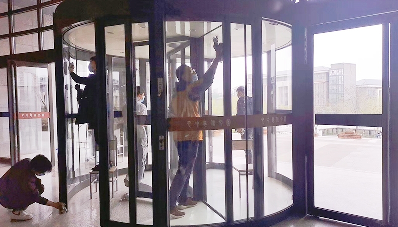 伟德国际1949的责任区在杏园公寓丁座一层,各班级同学们组成“攻坚小组”,对责任区的门窗、楼梯扶手、地面和直饮水机等进行了彻底的卫生清洁消毒、通风换气、垃圾清理等工作。各宿舍同学们认真细致清洁宿舍窗户、阳台与地面。
