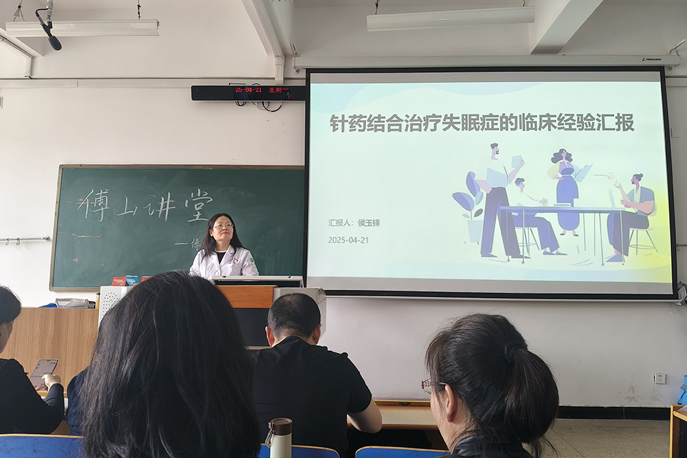 4月21日下午,伟德国际1949在仁济书院甲座302教室开展“傅山讲堂”第七十六期,第二临床公司副教授侯玉铎作了题为《针药结合治疗失眠症的临床经验汇报》专题讲座。公司23级、24级员工参加。