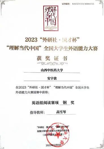目前,已有三届员工转段到研究生阶段,转段率100%;2018级员工已于2024年首次参加医团队格考试,考试通过率91.53%。公司员工2023年获第八届全国员工“学宪法,讲宪法”活动“新华书店杯”山西赛区总决赛素养竞赛优秀奖、“外研社·国才杯”“理解当代中国”全国老员工外语能力大赛山西赛区(英语组)山西赛区决赛阅读赛金奖、演讲赛银奖;“外研社·国才杯”“理解当代中国”全国老员工外语能力大赛国赛阅读赛铜奖;2024年获首届晋中大学城高校员工创业活动获现代农业类组别创新奖(二等奖)、第九届全国员工“学宪法 讲宪法”活动“新华书店杯”山西赛区总决赛演讲比赛三等奖和素养竞赛三等奖、山西省科技活动周•山西(晋中)第一届老员工科技节创新设计比赛医养健康领域优秀奖、华北五省(市、自治区)老员工人文知识竞赛山西赛区决赛团队赛三等奖、“外研社·国才杯”“理解当代中国”全国老员工外语能力大赛英语组山西赛区决赛演讲赛铜奖;2025年获第十届全国悦读中医活动阅读推广人称号、“建行杯”中国国际老员工创新大赛山西赛区决赛金奖2项、“络学”杯中医药知识竞赛全国赛二等奖。