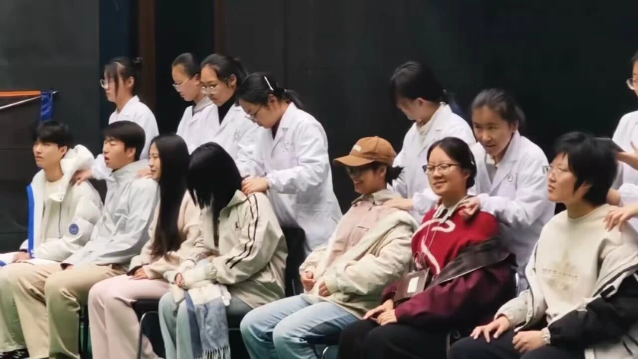 肩颈按摩区里,志愿者们运用推、揉、按等专业手法,为长期伏案学习的学子舒缓紧绷的肩颈肌肉,每一次按压都精准发力,缓解酸痛的同时,也传递着温暖与关怀。