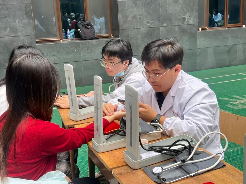 活动内容包含脉诊、耳穴贴敷、血压测量、肩颈按摩等,为正值学业关键期的太理学子送去 “看得见、摸得着” 的健康关怀,更在互动中搭建起两校交流的桥梁,让中医药传统文化焕发青春活力。