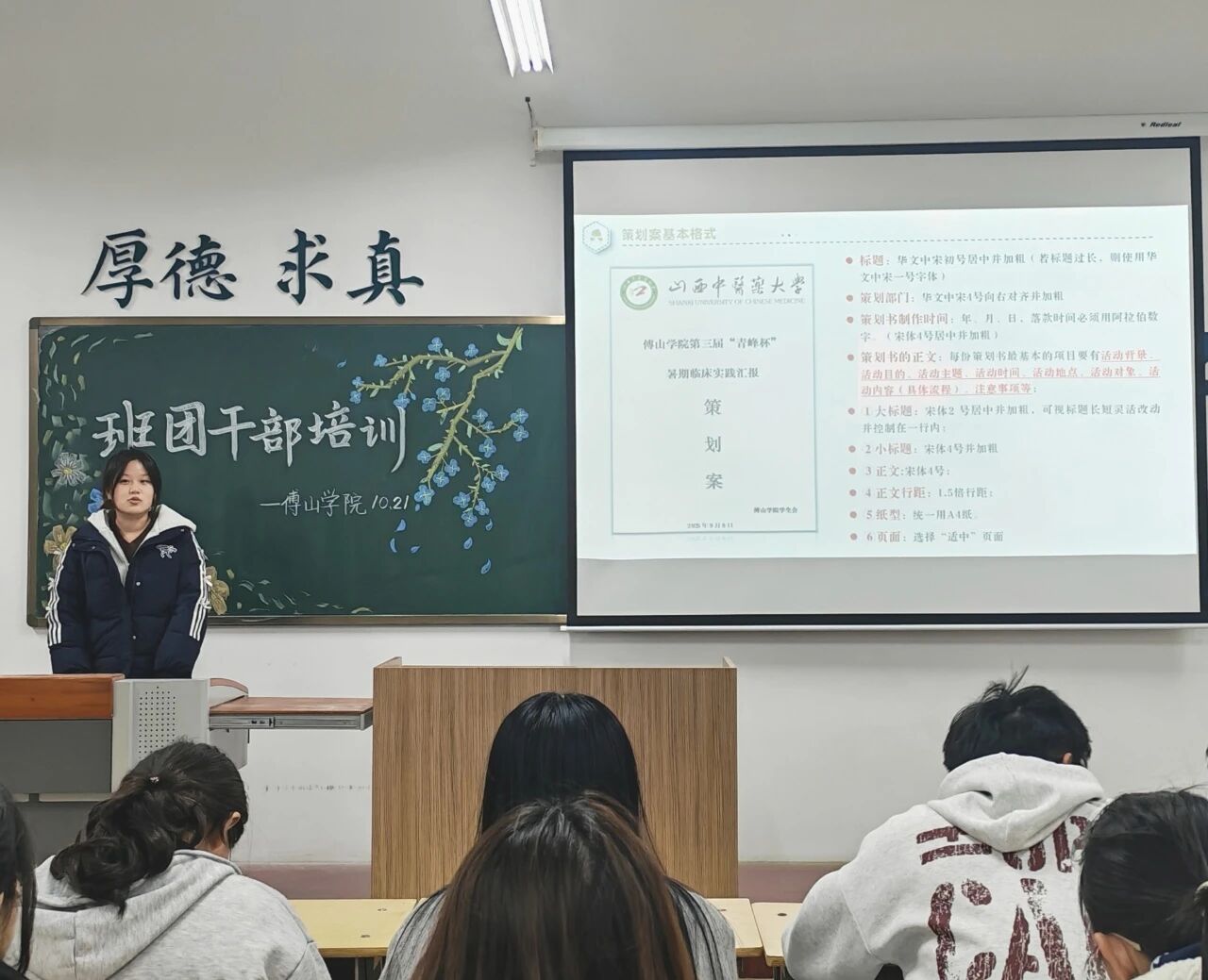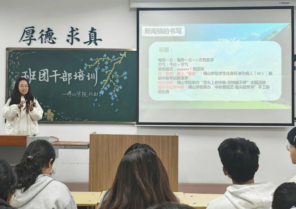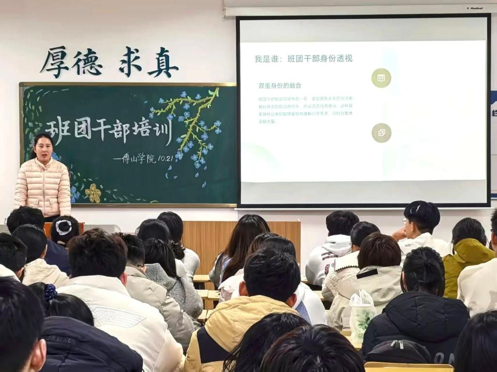 10月21日晚,伟德国际1949在图文910教室举办班团干部能力提升专题培训,各班班委及员工会全体人员参会,本次培训以“从‘心’出发,以‘行’担当——做一名有温度,有力量的引路人”为主题,旨在全面提升员工干部综合素养与工作能力,培训围绕五大核心模块展开。
