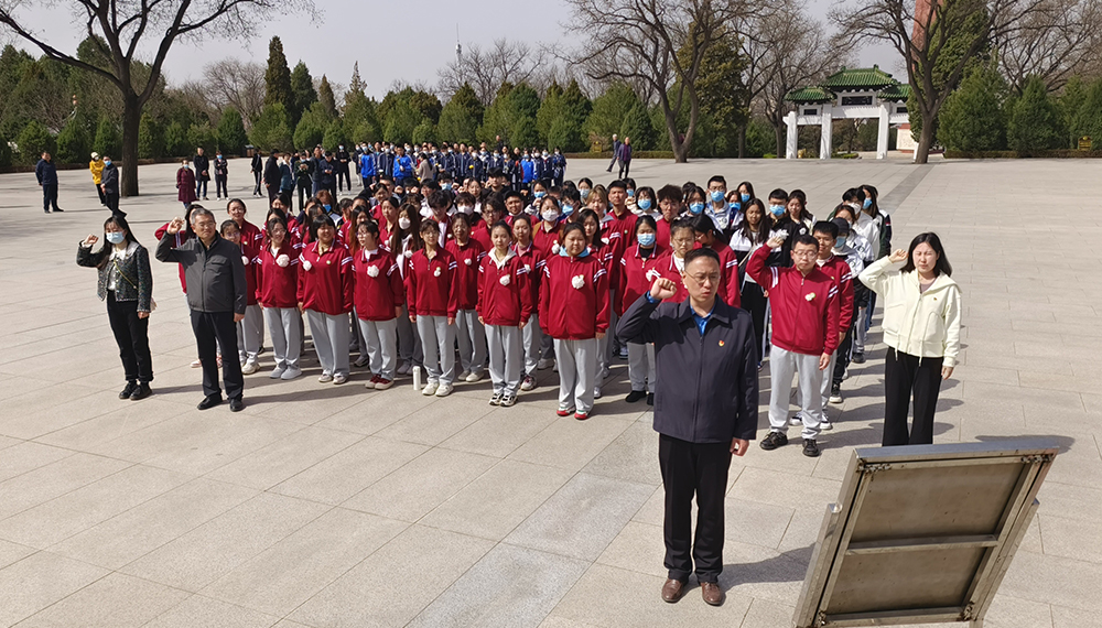 活动在庄严肃穆、巍峨耸立的烈士纪念碑前举行。全体师生列队肃立,默哀致敬并敬献花篮,表达对先烈的崇高敬意和沉痛哀思。李培硕和员工党员代表樊瑞枝进行了发言。