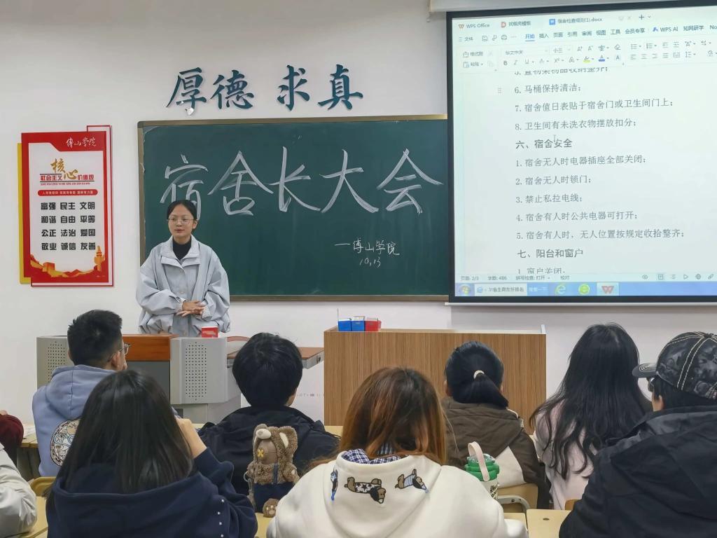 为进一步明确新学期宿舍管理标准,筑牢安全居住防线,营造整洁和谐的宿舍氛围,10月12日19:30,伟德国际1949生活部负责人张予婷于图文信息中心910室召开宿舍管理新规说明会。各年级宿舍长悉数参会,共同学习新规细则,凝聚共建共识。